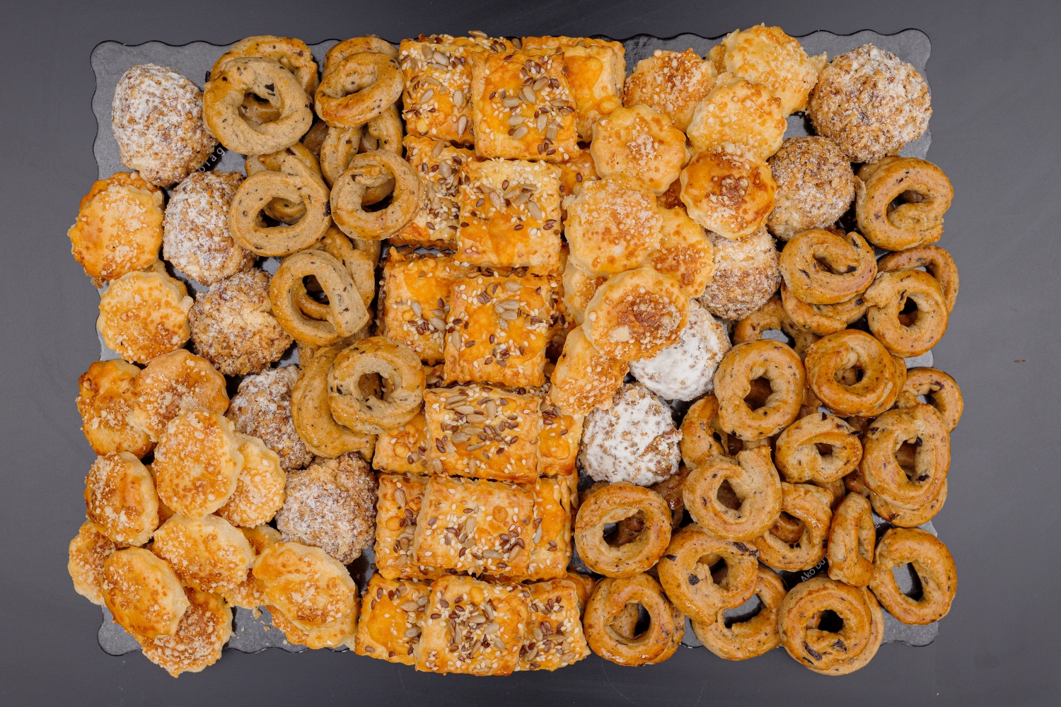 Поръчайте готови комбинации от най-обичаните сладки и солени домашни изделия на Благите – за вкъщи, офиса или за вашите специални събития. Плата от 1.500 кг или 2,000 кг. Красиво опаковани с панделка, на която цвета е по ваш избор. Снимките илюстрират 1,5 кг.