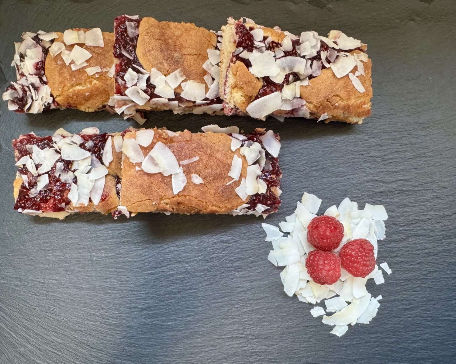 МАЛИНОВ СЛАДКИШ С КОКОС И БЯЛ ШОКОЛАД